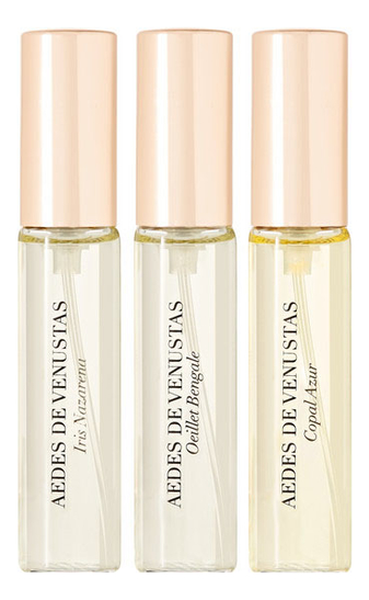 Дорожный набор состоит из трех ароматов IRIS NAZARENA, OEILLET BENGALE , COPAL AZUR.