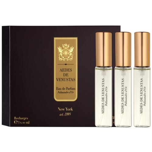 Palissandre d'Or от Aedes de Venustas. Женский аромат - относится к группе древесные пряные, создан в 2015 году. Состав парфюмерной композиций корица, кориандр, розовый перец, мускатный орех, амбреттапачули, палиссандр (розовое дерево)кедр. Парфюмер создавший данную композицию