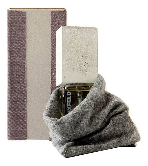 Аромат помещен во флакон с крышкой из обработанного вручную бетона.