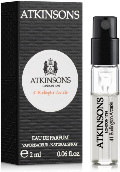 41 Burlington Arcade от Atkinsons аромат относится к группе древесные фужерные, создан в 2017 году. Состав парфюмерной композиций цветочные ноты, грейпфрут, цитрусные ноты, белый перецкардамон, мускатный орех, красный перец, лакричникмускус, ветивер, амбра, белый кедр, дым. Парфюмер создавший данную композицию