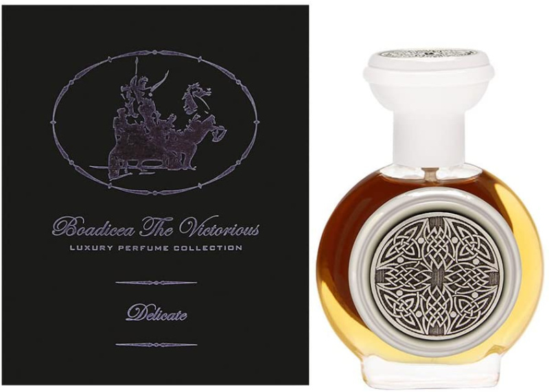 Легендарный парфюмерный бренд Boadicea the Victorious представляет аромат Delicate («Деликатный»), вышедший в свет в 2009 году. Этот волнующий, нежный аромат прекрасно подойдет как прекрасным дамам, так и не лишенным романтизма, мужчинам. Его благоухание напомнит свежесть английских садов, омытых дождем; легкую горчинку свежей листвы и тонкий аромат скромных, но изящных, садовых цветов. Такой парфюм придется по нраву людям с тонкой душевной организацией, чувствующим и чувственным, впечатлительным и творческим. Всем, кто остановил своей выбор на этом аромате, можно также посоветовать духи Complexe, столь же роскошные и насыщенные. Духи обладают необычайной стойкостью, благодаря редким, натуральным, ценнейшим ингредиентам, вошедшим в его состав. Роскошный дизайнерский флакон являет собой подлинный шедевр ювелирного искусства, он изготовлен из натурального хрусталя, инкрустированного благородным орнаментом из серебра. Парфюмерная композиция этого аромата состоит из нот лесного колокольчика, лилии, гиацинта, жасмина, розы, корицы, гвоздики и гальбанума.