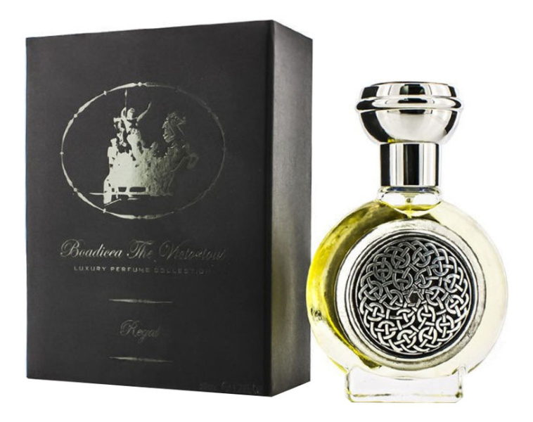 Regal - это цветочно-восточный парфюм-унисекс, 2011 года, от Boadicea the Victorious, с нотками фруктов, зелени, фиалки, ландыша, розы, шафрана, герани, жасмина, амбры, верджинского кедра, пачули и сандалового дерева.