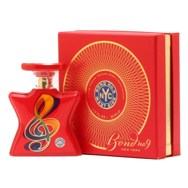 West Side от Bond №9 создан в 2009 году. Аромат посвящен музыкальному центру Нью-Йорка. Знаменитые концертные залы и мюзик-холлы открывают для Вас свои двери. Парфюм раскрывается подобно восхитительной феерии, стоит только нанести его на кожу. Классика фортепианной музыки, затем великолепный джаз, а на закуску тяжелый рок. Музыка живет в сердце каждого, позвольте ей всегда быть с Вами! Парфюмерная композиция открывается утонченными нотами розы и иланг-иланга, сердце представляет пион с оттенком сандалового дерева, а шлейф окутывает ароматами амбры, ванили и мускуса.