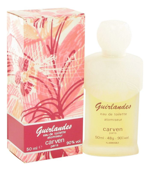 Guirlandes от Carven. Женский аромат - относится к группе цветочные альдегидные, создан в 1982 году. Состав парфюмерной композиций бергамот, гальбанум, гиацинт, малинажасмин, ландыш, тубероза, роза, гвоздикамускус, кедр, сандаловое дерево, дубовый мох. Парфюмер создавший данную композицию