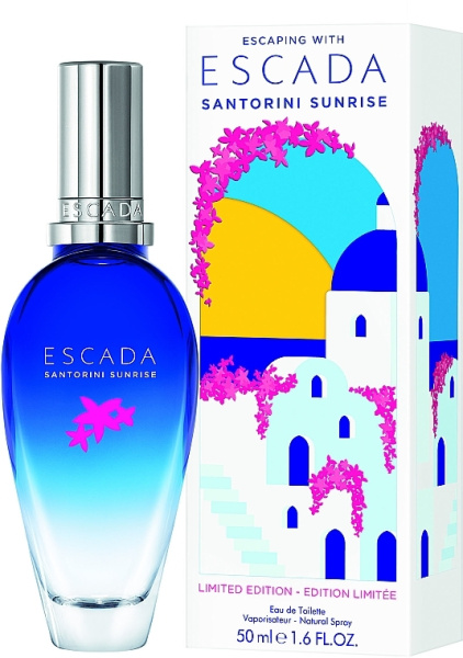 Santorini Sunrise от Escada. Женский аромат - относится к группе фужерные зеленые, создан в 2022 году. Состав парфюмерной композиций бергамот, мандарин, Сорбетжасмин, розовый перецзеленые ноты. Парфюмер создавший данную композицию