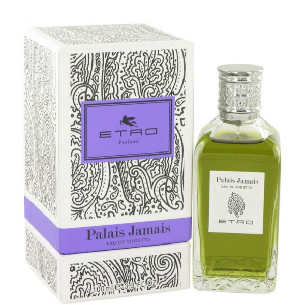 Etro - Palais Jamais - композиция с резкими сухими нотами цитрусовых, которые вызывают ассоциации с ароматами зеленого чая и мяты, затем возникают теплые и окутывающие ноты табака и кожи. Название его напоминает о зелени восточного сада, о саде Аллаха и о тишине пустыни. Вне мира, вне повседневности. Погружение в энергию одиночества, в безопасный мир медитации, создающий новые духовные образы. Жасмин успокаивает. Бергамот борется со стрессами. Шалфей возбуждает.