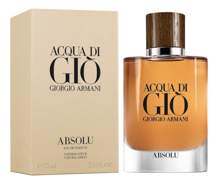 Acqua di Gio Absolu Men от Giorgio Armani. Мужской аромат - относится к группе древесные фужерные, создан в 2018 году. Состав парфюмерной композиций бергамот, фруктовые ноты, морские нотырозмарин, герань, лавандабобы Тонка, пачули, лабданум, древесные ноты. Парфюмер создавший данную композицию
