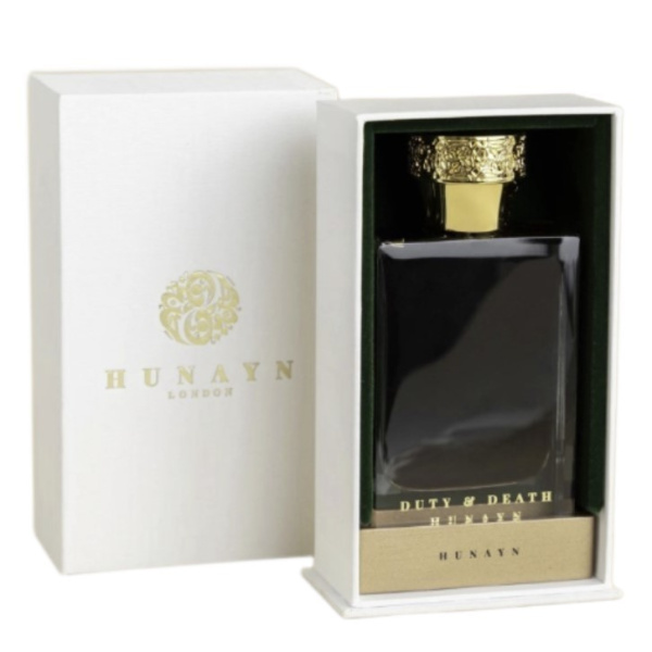 Duty & Death от Hunayn аромат относится к группе фужерные пряные, создан в 2024 году. Состав парфюмерной композиций береза, гвоздика, шафранжасмин, бобы Тонка, мирра, имбирь, шафранветивер, пачули, сандал, нагармота. Парфюмер создавший данную композицию