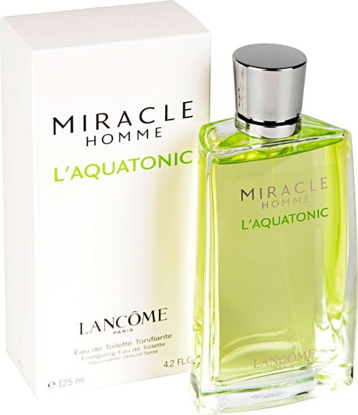 Компания Lancome выпустила свежий, мужской аромат Miracle Homme L'Aquatonic. Аромат создан для мужчины, который ценит свободу манящего пространства, неукротимость морского ветра, бесконечность синего неба. Неистовая природа наполняет его своими звуками, силой и энергией. Это оригинальная, освежающая парфюмерная композиция, в которой переплетаются цитрусовые и древесные ноты.
