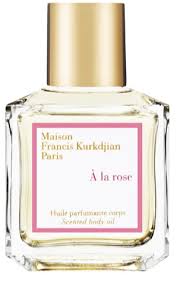 A La Rose Scented Body Oil от Maison Francis Kurkdjian. Женский аромат - относится к группе цветочные, создан в 2014 году. Состав парфюмерной композиций бергамот, цитрусные ноты, апельсинроза, фиалка, дамасская розакедр, древесные ноты. Парфюмер создавший данную композицию