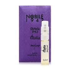 Malia от Nobile 1942. Женский аромат - относится к группе цветочные альдегидные, создан в 2015 году. Состав парфюмерной композиций мандарин, розовый перец, фруктовые нотыроза, османтус, табак, чёрный перецмускус, ветивер, дубовый мох, пачули. Парфюмер создавший данную композицию