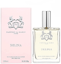 Delina Масло для тела от Parfums de Marly. Женский аромат - относится к группе цветочные, создан в 2017 году. Состав парфюмерной композиций бергамот, мускатный орех, личи, ревеньмускус, ваниль, роза, пионветивер, ладан, белый кедр. Парфюмер создавший данную композицию