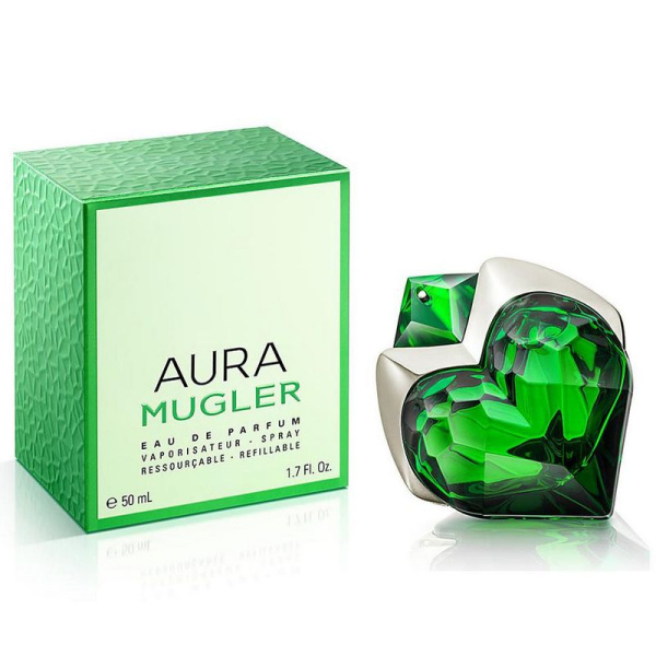 Aura Mugler Eau de Parfum от Thierry Mugler. Женский аромат - относится к группе цветочные зеленые, создан в 2018 году. Состав парфюмерной композиций апельсиновый цветревеньваниль, древесные ноты. Парфюмер создавший данную композицию