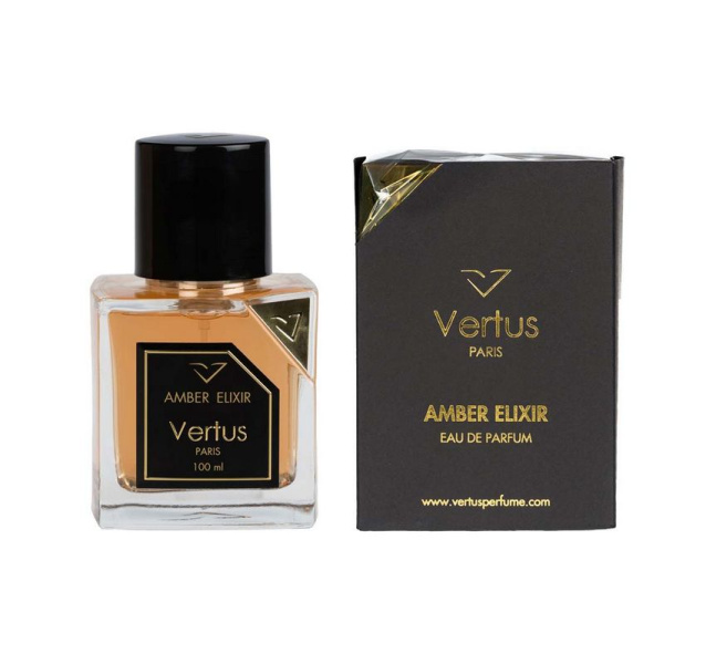 Amber Elixir от Vertus аромат относится к группе древесные пряные, создан в 2015 году. Состав парфюмерной композиций грейпфрут, сухофрукты, ром, артемизия, чёрный перецамбра, белый кедр, лабданум, шафранмускус, бобы Тонка, тиковое дерево, кастореум (бобровая струя), сандал. Парфюмер создавший данную композицию