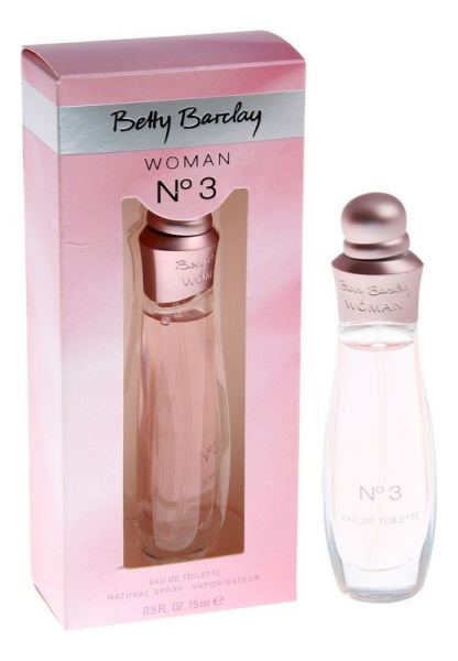 Woman No 3 от Betty Barclay. Женский аромат - относится к группе цветочные фруктовые, создан в 2008 году. Состав парфюмерной композиций бергамот, зеленые ноты, лист черной смородиныжасмин, розаваниль, сандал. Парфюмер создавший данную композицию