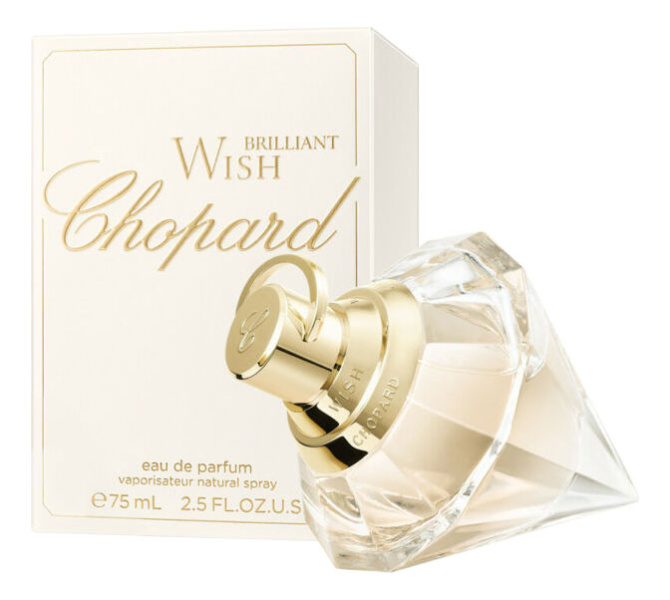 Завораживающий и вожделенный, исключительный и манящий драгоценный камень бриллиант вдохновил Chopard на создание цветочно-восточных женских духов — Wish Brilliant. Этот элегантный аромат позволяет чувствовать себя настоящей женщиной, выгодно подчеркивая вечерний образ светской львицы. Свежие и легкие начальные ноты зеленого яблока, кисловатого апельсина и винограда уступают место утонченным и запоминающимся оттенкам жасмина и пикантного розового перца. Изысканный шлейф парфюмерной композиции составлен из теплой амбры в сочетании с древесными нотами. Яркий, притягательный аромат упакован в элегантный флакон, выполненный в форме алмаза. Chopard Wish Brilliant создает необыкновенную, чарующую ауру, которая раскрывает во всей красе женский вкус и соблазн к гламуру и роскоши.