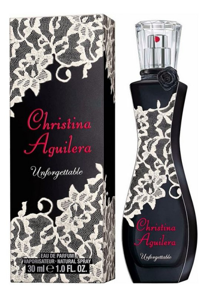 В коллекция духов Christina Aguilera пополнение: парфюмированная вода Unforgettable. Композиция относится к восточно-цветочной группе ароматов: верхние фруктовые ноты смесь сливы и граната, сердце составляют цветы ночного жасмина и турецкой розы, а в завершении базовый аккомпанемент из бобов тонка, ванили и кашемира.