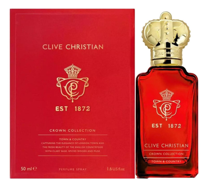 Crown Collection Town & Country от Clive Christian. Женский аромат - относится к группе древесные, создан в 2023 году. Состав парфюмерной композиций бергамот, лимон, шалфейкардамон, ладан, белый чай, сандалкедр, амбра, пачули. Парфюмер создавший данную композицию