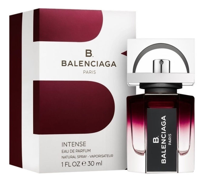B Balenciaga Intense от Cristobal Balenciaga. Женский аромат - относится к группе древесные фужерные, создан в 2016 году. Состав парфюмерной композиций черника, зеленый чай, сояцветок кактусакедр, махагони (красное дерево). Парфюмер создавший данную композицию