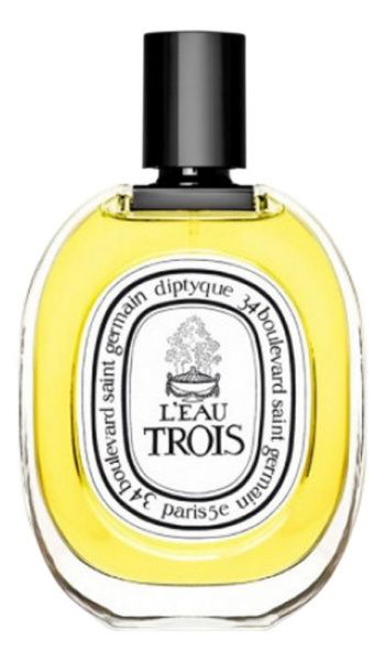 Diptyque - L'Eau Trois – навеивает воспоминания о летнем времени, проведенном на морском побережье. Парфюм получился очень свежим, но в тоже время слегка суховатым. В основу вошли ноты душицы, сосны, розмарина, мирры и мирта.