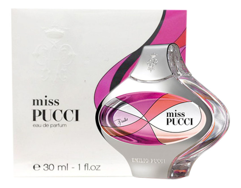 Emilio Pucci Miss Pucci любит мифические геометрические принты, носит яркую и красивую одежду, олицетворяет собой изысканность, отражая мир отдыха на солнечном побережье, и афиширует современную обольстительность. Для женщины, которая чувствует себя молодой и свободной. Она прекрасна, обольстительна, элегантна и обаятельна. Деятельная, она живет несколько жизней одновременно и путешествует по всему свету, останавливаясь в наиболее ярких и красочных местах нашей планеты. Она проявляет сильный характер, который утверждает в своей одежде. Она любит эпоху, в которой живёт. Эмблематический и очень современный аромат Miss Pucci воплощает квинтэссенцию и дух стиля «Pucci girl». Emilio Pucci Miss Pucci – это абсолютно женственный цветочный аромат на мускусной основе. В головных нотах проявляется элегантный аккорд магнолии, тогда как свежесть отмечена искрящимся сицилийским зимним лимоном. В сердце раскрывается букет: нежная турецкая роза, соблазнительный иланг-иланг Коморских островов, утончённый тунисский флёрдоранж и пышный индийский жасмин самбак. База основывается на техасском кедре с красивыми древесными нотами, на пудровом флорентийском ирисе (колыбель фирмы) и белых мускусах для утончённой чувственности. Искрящийся, элегантный и изысканный цветочный аромат.