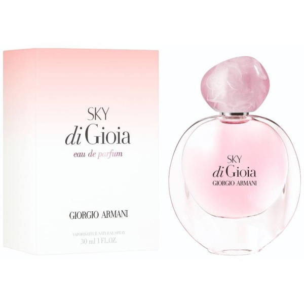 Sky di Gioia от Giorgio Armani. Женский аромат - относится к группе цветочные фруктовые, создан в 2016 году. Состав парфюмерной композиций личи, грушароза, розовый пионбелый кедр, белый мускус, ежевика. Парфюмер создавший данную композицию