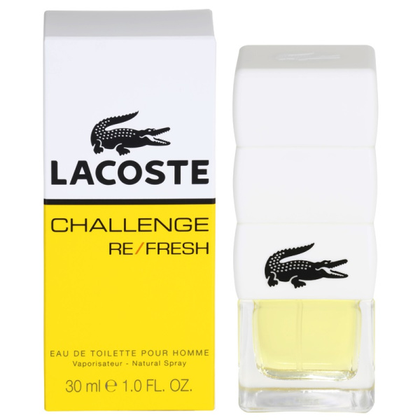 Lacoste - Challenge Re/Fresh создан Домом Lacoste на основе уникальной технологии внутреннего таймера, который позволяет аромату… самому обновляться и вновь становиться невероятно бодрящим и свежим, и сохранять этот удивительный эффект в течение всего дня! Интеллектуальный таймер осуществляет «подзавод» аромата, вновь активируя его, когда это необходимо. Ты готов к приливу адреналина и к тому, что твой Challenge Re/Fresh будет с тобой чуть дольше, чем этого ожидали окружающие?! Что он будет двигаться и жить в одном ритме с тобой, заряжая тебя энергией и наполняя силой, и помогая побеждать!