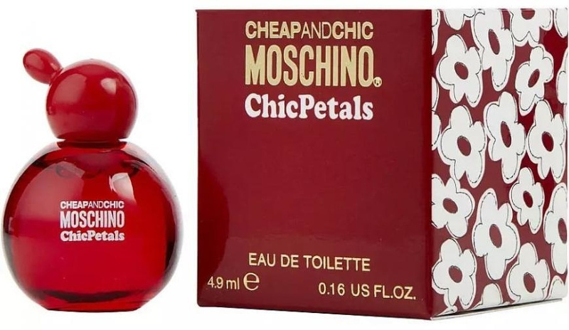 Moschino - Cheap & Chic Petals - композиция нового аромата создана парфюмером Guillaume Flavigny, . Она открывается сочными фруктовыми нотами граната и дикой земляники в сочетании с красным имбирем. Далее следует цветочное сердце из красной орхидеи, гардении и водяной лилии. Наконец, база новинки включает аккорды мускуса, дерева хиноки и итальянского ириса.