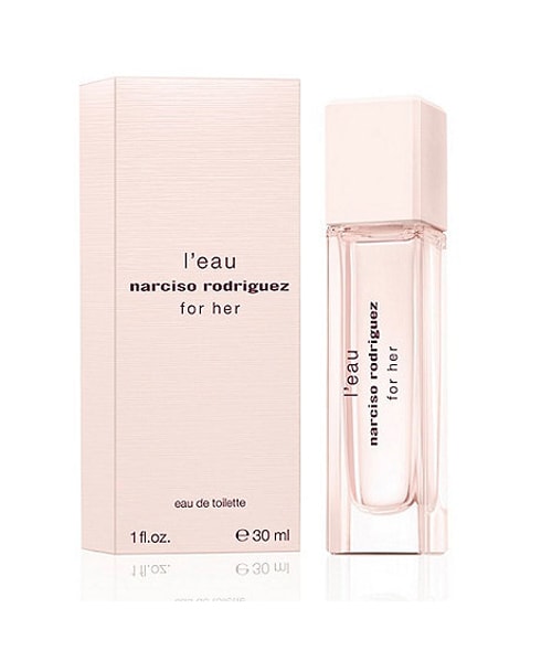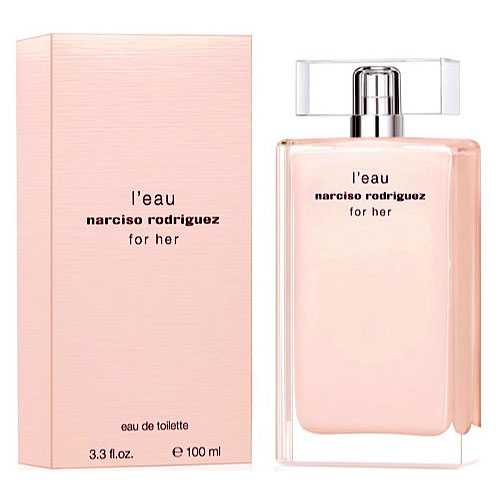 Создатели данной композиции воплотили в реальность волнующую женственную изысканность. В начале духи Narciso Rodriguez - L'Eau For Her одаривают нас жасмином с цикламеном и розовым пионом. Дальше парфюм раскрывается запахами розы амброй и ландышем. Связь с ранее изданными вариациями прослеживается благодаря традиционному мускусу и пачули. Он создаёт необыкновенное тепло и расслабляющую атмосферу, жизнь начинает восприниматься настоящей сказкой и женщина начинает ощущать себя прекрасной волшебницей.