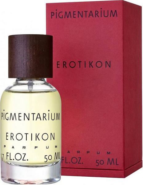 Erotikon от Pigmentarium аромат относится к группе Гурманские, создан в 2019 году. Состав парфюмерной композиций розовый перец, имбирь, шоколадбобы Тонка, ванильмускус, амбра, пачули, сандал. Парфюмер создавший данную композицию